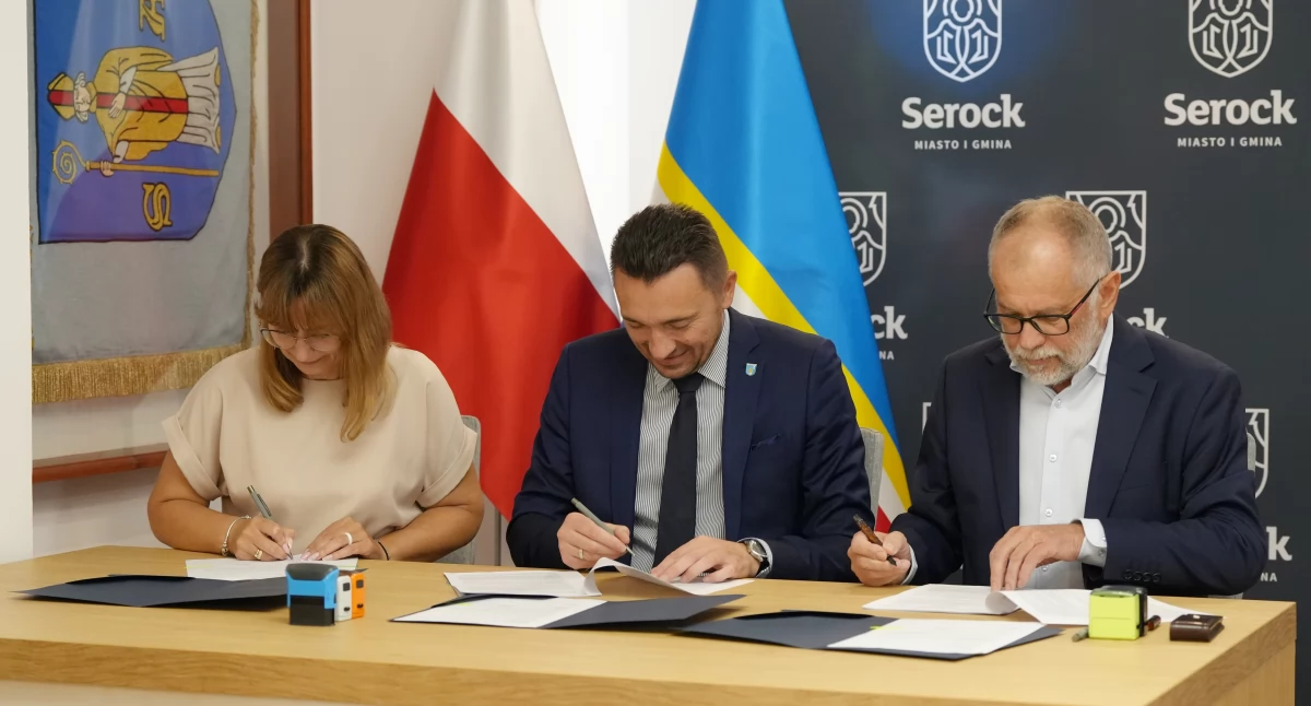 15 lipca 2025 r. Burmistrz Miasta i Gminy Serock Artur Borkowski przy kontrasygnacie Skarbnika Moniki Karpińskiej, podpisał umowę z firmą Algeo Sp. z o.o. na realizację kluczowego etapu projektu pn. „Wykonanie otworu poszukiwawczo–rozpoznawczego wód termalnych Serock GT-1”.