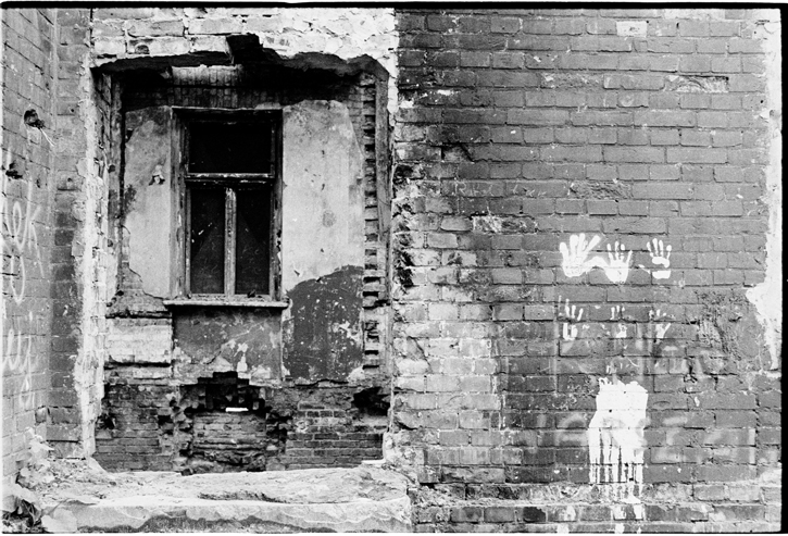 Pierwszego dnia nie zrobiłem prawie żadnych zdjęć, tylko spacerowałem bardzo powoli z aparatem po ulicach i czekałem na problem. Wiedziałem że budynki są oczywiście stare i że w niektórych z nich zachowały się rzeźbione konstrukcje schodów - pytałem o to wszystkich starszych mieszkańców którzy siedzieli na ławkach przed budynkami. Po godzinie poznałem Andrzeja, który stał się moim przewodnikiem. Rozmawiałem z nim o tym że dzieci mają plac zabaw który mieszkańcy sami zrobili, gdy usłyszałem "Andrzej! Podobno jakiś facet łazi z aparatem!". I tak poznałem siostrę Andrzeja. Umówiliśmy się na następny dzień na spacer żeby poszukać ciekawych schodów. Andrzej zapewnił mnie że to bardzo dobrze że go poznałem bo teraz nic nie powinno mnie złego na Brzeskiej spotkać. Miałem tylko mówić każdemu "Andrzej mi pozwolił".
