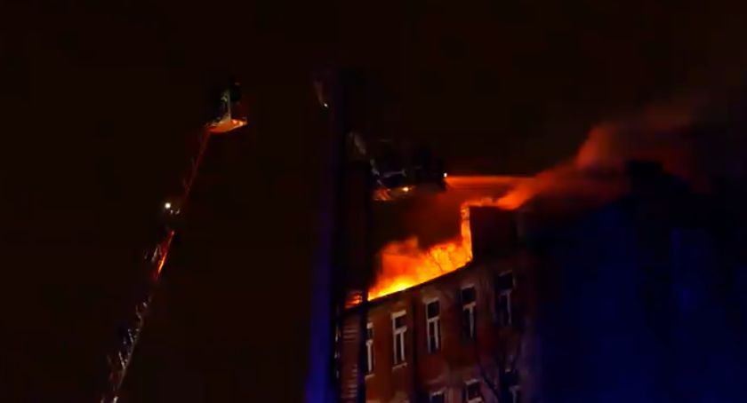 Na Pradze Północ strażacy zostali wezwani do ugaszenia pożaru. Płomienie były widoczne na samym dachu kamienicy, możliwe, że pożar wybuchł na jej ostatnim piętrze.