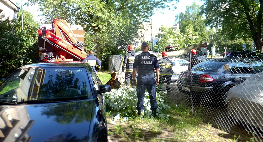 11 czerwca rano straż miejska asystowała przy usuwaniu przewróconego drzewa na Pradze Północ. Kwadrans po siódmej rano dyżurny poinformował strażników, że przy Skoczylasa przewróciło się drzewo. Na miejscu patrol zobaczył wiatrołom leżący na dachu skody, która ucierpiała najbardziej – gałęzie i korona drzewa uszkodziły nieco słabiej samochody parkujące po drugiej stronie parkingu. Do czasu przybycia straży pożarnej i policji strażnicy ustalali właścicieli samochodów uszkodzonych przez zwalone drzewo oraz tych, które mogłyby przeszkadzać podczas usuwania pnia i zabezpieczyli teren przed dostępem osób postronnych. Strażacy podnieśli dźwigiem wiatrołom. Akcja zakończyła się po około dwóch godzinach.